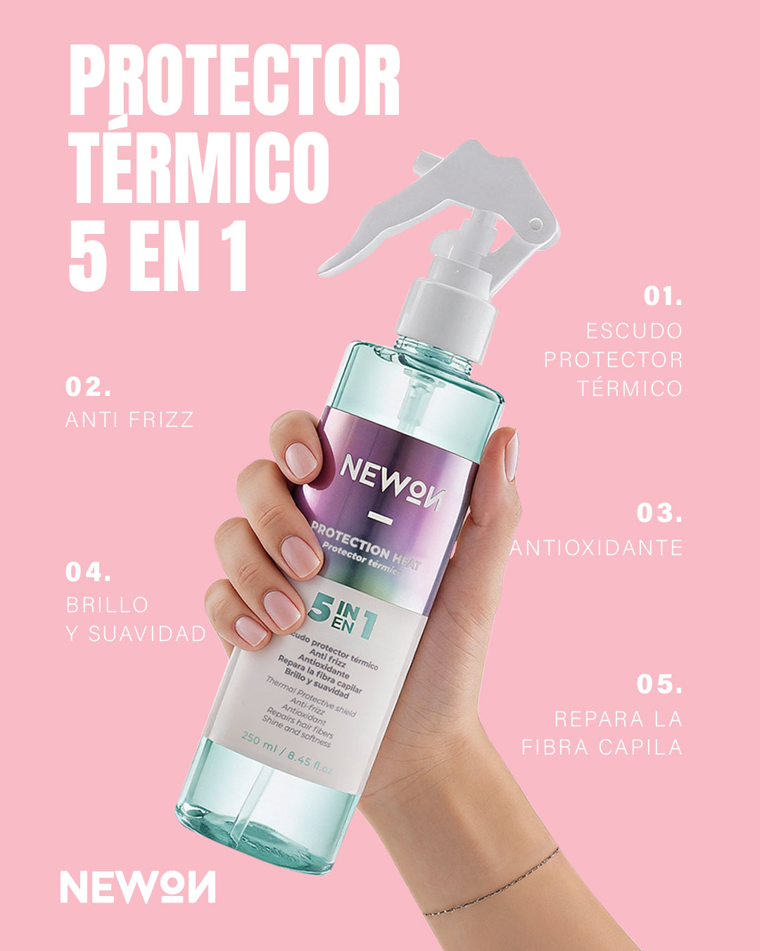 Si usualmente utilizas herramientas de calor en tu cabello, el protector térmico de newon es tu mejor amigo.