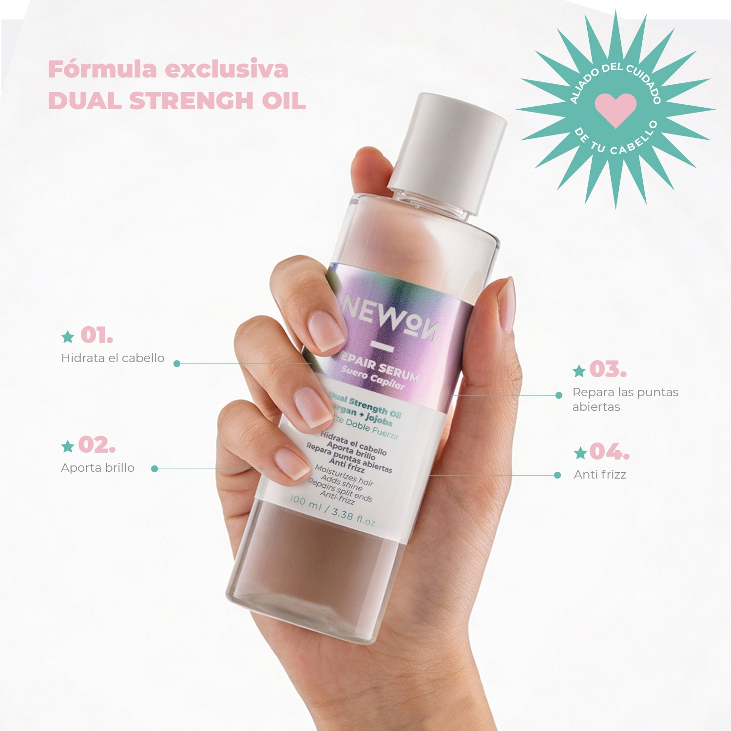 Hidrata tu cabello con el serum reparador a base de aceite de argan y jojoba. Aporta brillo, repara puntas abiertas y elimina el frizz.